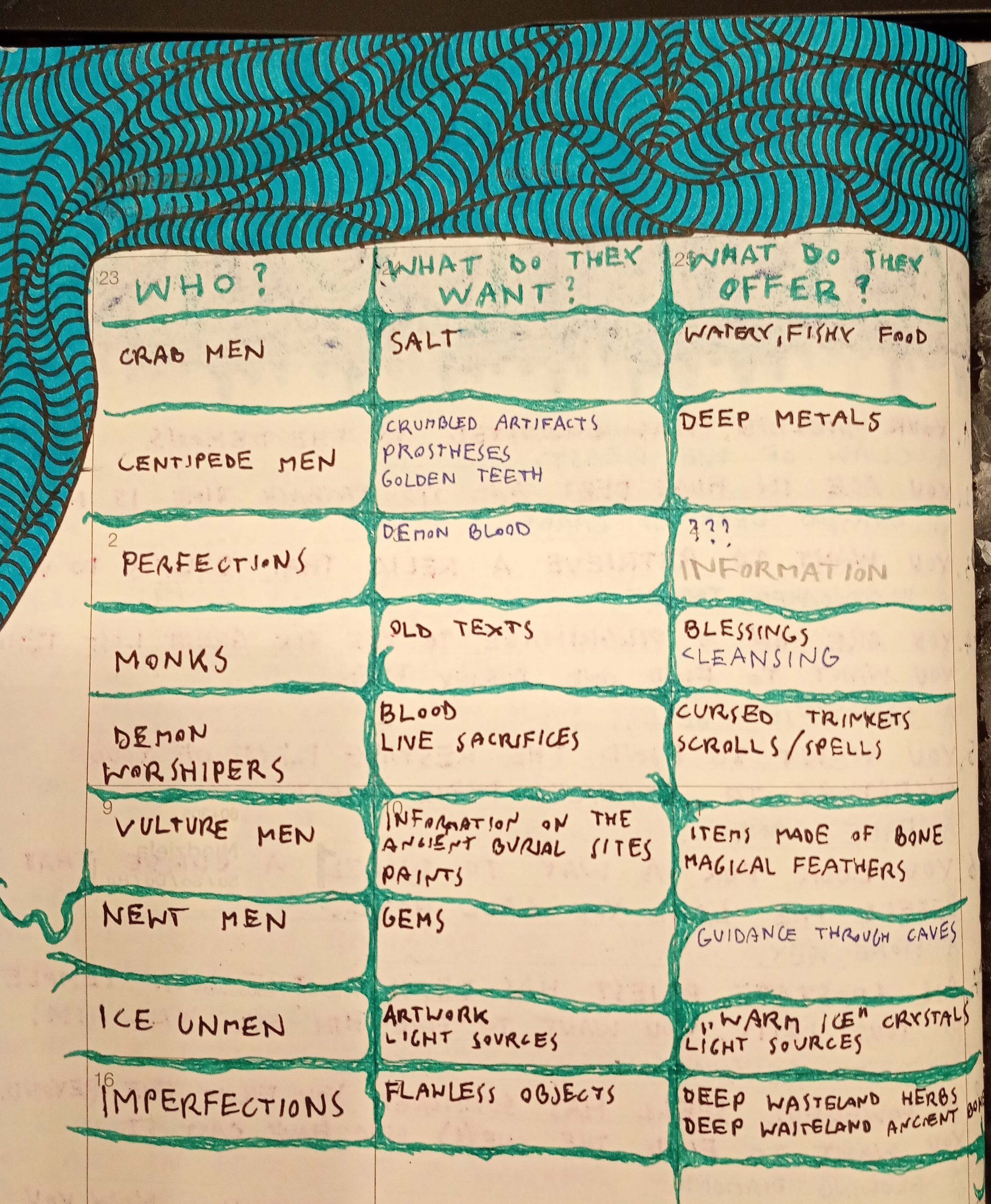 Yes! The "want", and the "how" make wonders to ease up decision paralysis and improvisation blocks at the table. Plus, filling tables like that one is oddly satisfying.